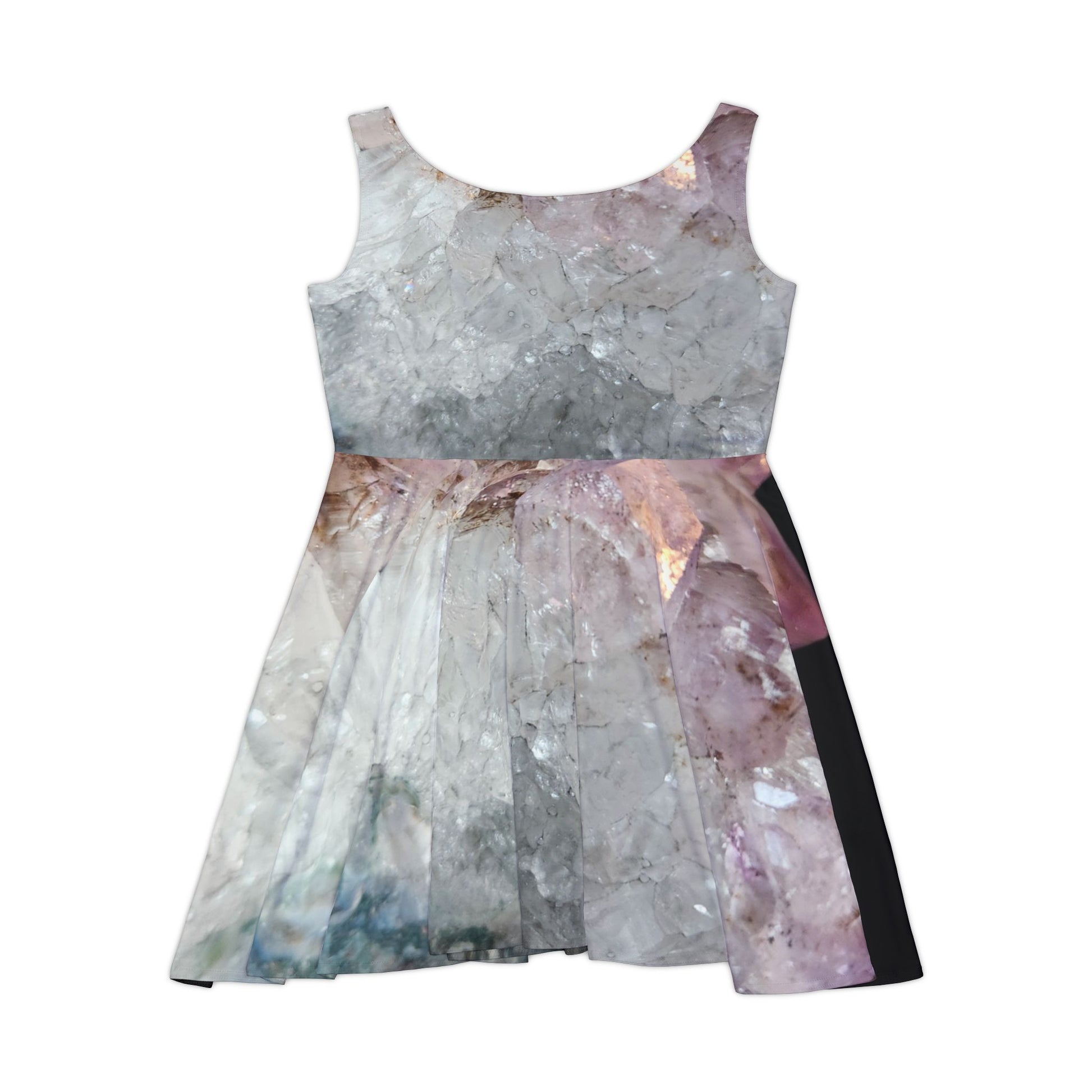 Embrace the symbolism of calm and clarity with this Amethyst-inspired Skater Dress. Perfect for those seeking spiritual protection and emotional balance, this dress is ideal for those looking to quiet the mind, ease stress, and encourage intuition. The vibrant colors and high cut neckline add a touch of whimsy to any outfit, making it suitable for everyday wear or special occasions. Ideal for individuals interested in spirituality and wellness.